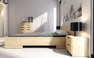 Łóżko Skandica SPECTRUM ST oparto na podstawie prostokąta, a dolna część ramy wsparta jest na nogach w formie narożników – od frontu/tyłu i na bokach. Dalej widać płaskie i pozbawione zdobień boki i front łóżka. W ten samej konwencji zaprojektowano wezgłowie – niezbyt obszerne, wygodne i proste. Całość, w niemal ascetycznym wydaniu pod kątem ozdobników, kryje piękno w nieskomplikowanym designie.
