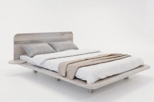 Nowoczesne łóżko drewniane w niezwykle modnym klimacie Japandi. Umiejętnie łączy powściągliwość w doborze dodatków oraz zamiłowanie do naturalnych barw i surowców.