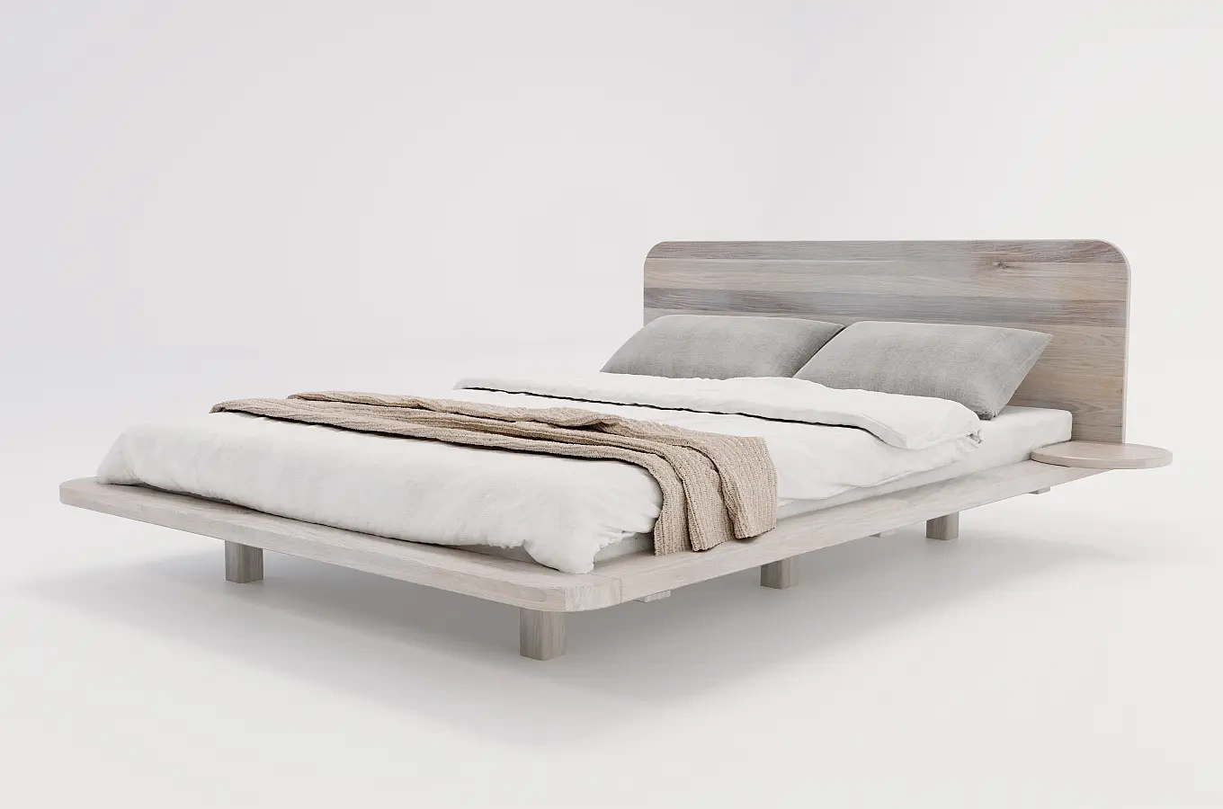 Drewniane łóżko dębowe JAPANDIC w stylu japandi