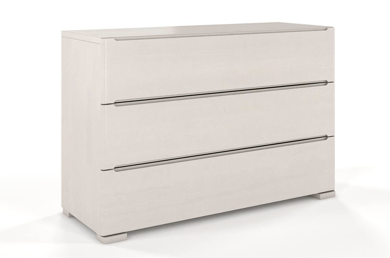 Komoda SPARTA wspiera się na subtelnych, ale niezwykle mocnych nogach, które dbają o jej stabilność. Narożniki nóg i boczne krawędzie komody zostały zaokrąglone, dodając opływowego kształtu i lekkości, jednocześnie podnosząc bezpieczeństwo mebla. Górny blat jest prosty i pozbawiony zdobień, dzięki temu stanowi kolejną powierzchnię, którą można dodatkowo zagospodarować.